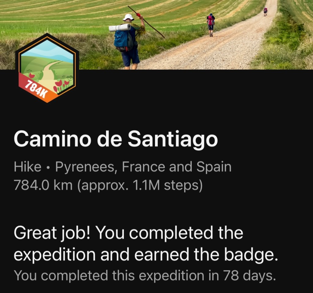 It takes at least a million steps to walk a camino. I know this because I joined a Garmin challenge in November to walk one. It took me 78 days and 1.1 million steps. I didn’t walk it in socks and sandals as the featured image suggests, I just like the feels of that photo. Hiking socks and sandals…what hiker doesn’t love that combination?! However, the camino, I did walk it from my front door, while on vacation, doing laps around airports and at home doing day to day things – all the steps counted! Let’s just sit with that gem for a moment. All.The.Steps.Count.