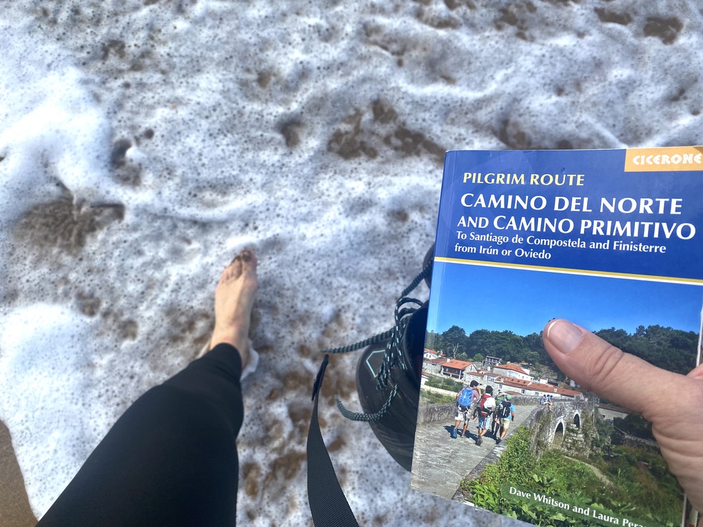 I set off again with another water taxi ride to continue along the trail across the inlet. Then a Camino del Norte treat arrived, coastal walking, which meant walking with shoes off and my feet in the sea. WOW. How is that for something magical on a unplanned Friday afternoon in October.