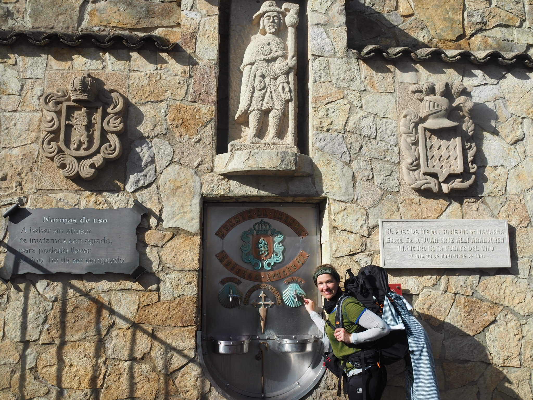 After you pass through Bodegas de Irache you will find the Fuente del Vino (the wine fountain). Yes, actual red wine from a winery. The idea of the wine fountain, which is open to all is apparently to offer motivation to fatigued pilgrims! You can also get a stamp with a smile from the winery. We stopped for both.