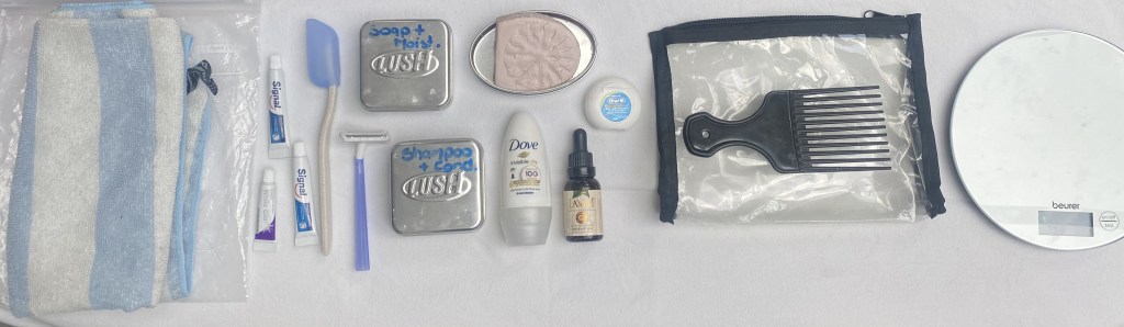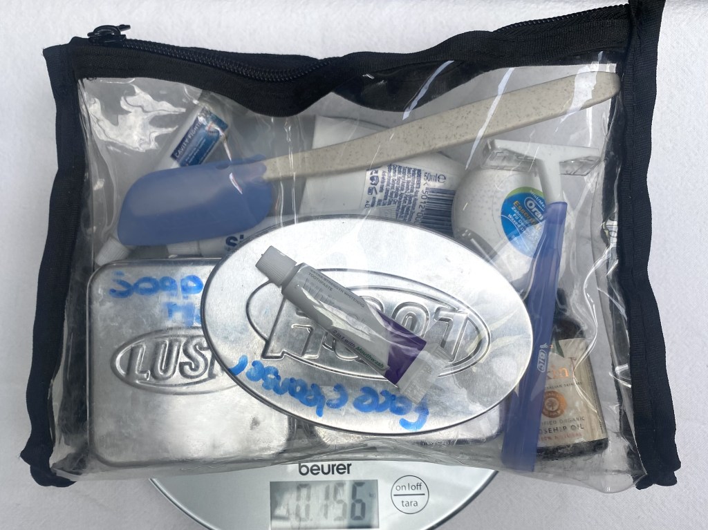 It is basically 1kg of my packing weight! Plastic bags have been suggested for the soaps but I really want to avoid that kind of convenience. The plastic ones I use for my sandals and the towel have been reused many times! If I use some for soap I am not sure they will go the distance. Any thoughts?